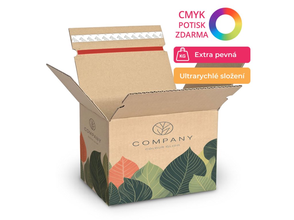 CMYK plnobarevný potisk rychlouzavírací krabice ZDARMA